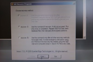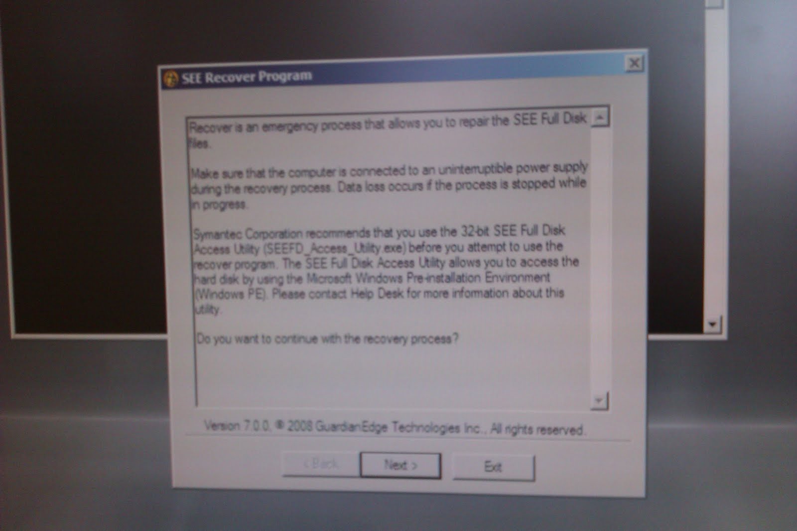 最直接令user 可進入Windows 的方法是利用Symantec 的 SEE Recover Program CD 進行Decryption。