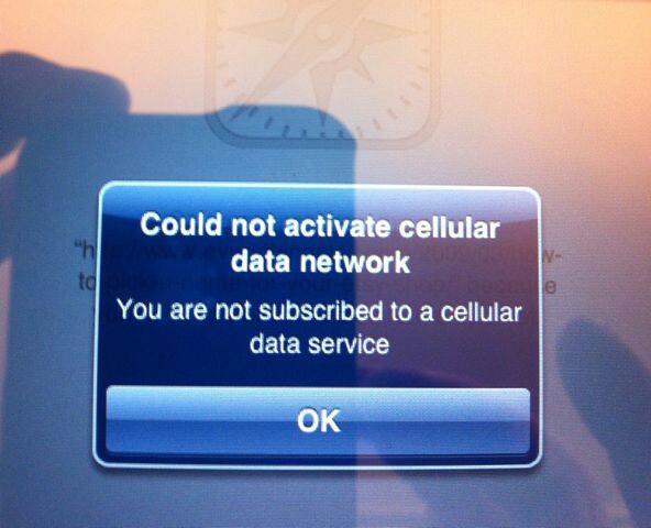 Safari 嘗試上網會出現 "Could not activate cellular data network - You are not subscribed to a cellular data service"