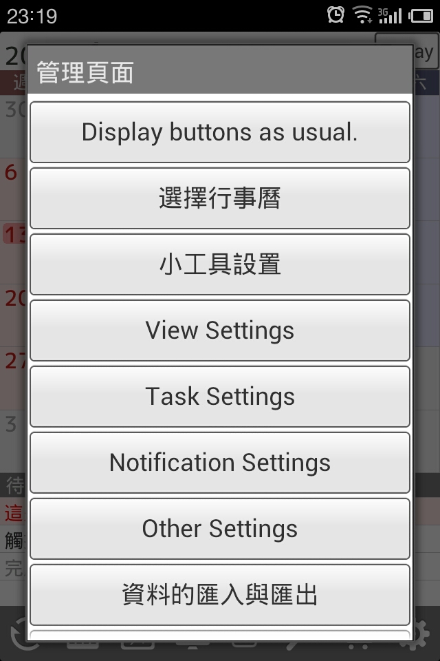 回到Jorte Calendar,Menu > Calendar ......可以選日曆喇!!! |