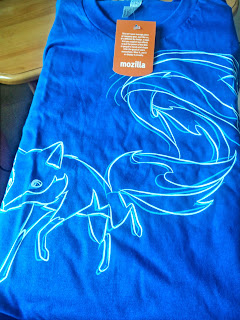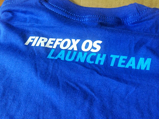 Firefox OS Launch Team T-Shirt 終於到手 等了幾個月,終於收到件 Firefox OS Launch Team T-shirt。 喜歡它不會太浮誇,沒有很大隻橙色Fire Fox,沒有很大的Mozilla Firefox 字樣在胸前。質料還不錯呢!