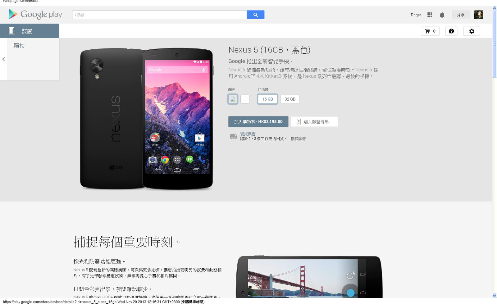 香港Google Play Store 終於可以訂購 Nexus 5 了!