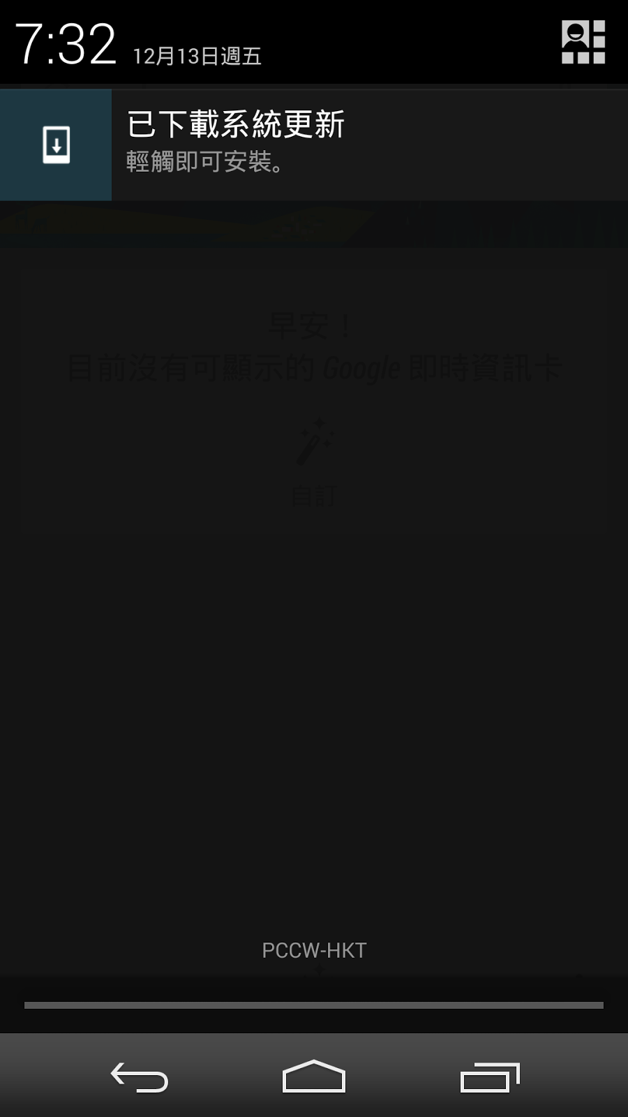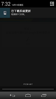 等了幾天,一覺早上醒來終於收到Android 4.4.2 System Update 的notification。