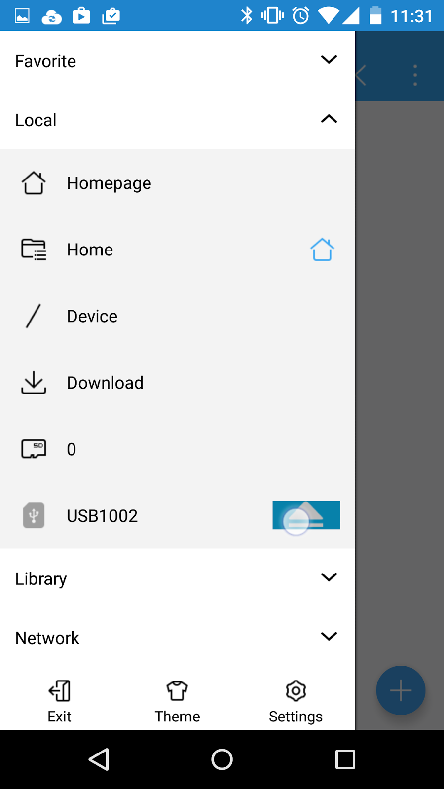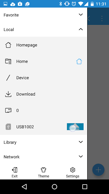 在左邊的Navigation Drawer看到多了一個叫 "USB1002"的選項。按下去的確顯示我正在開啟該USB drive,找到了!
