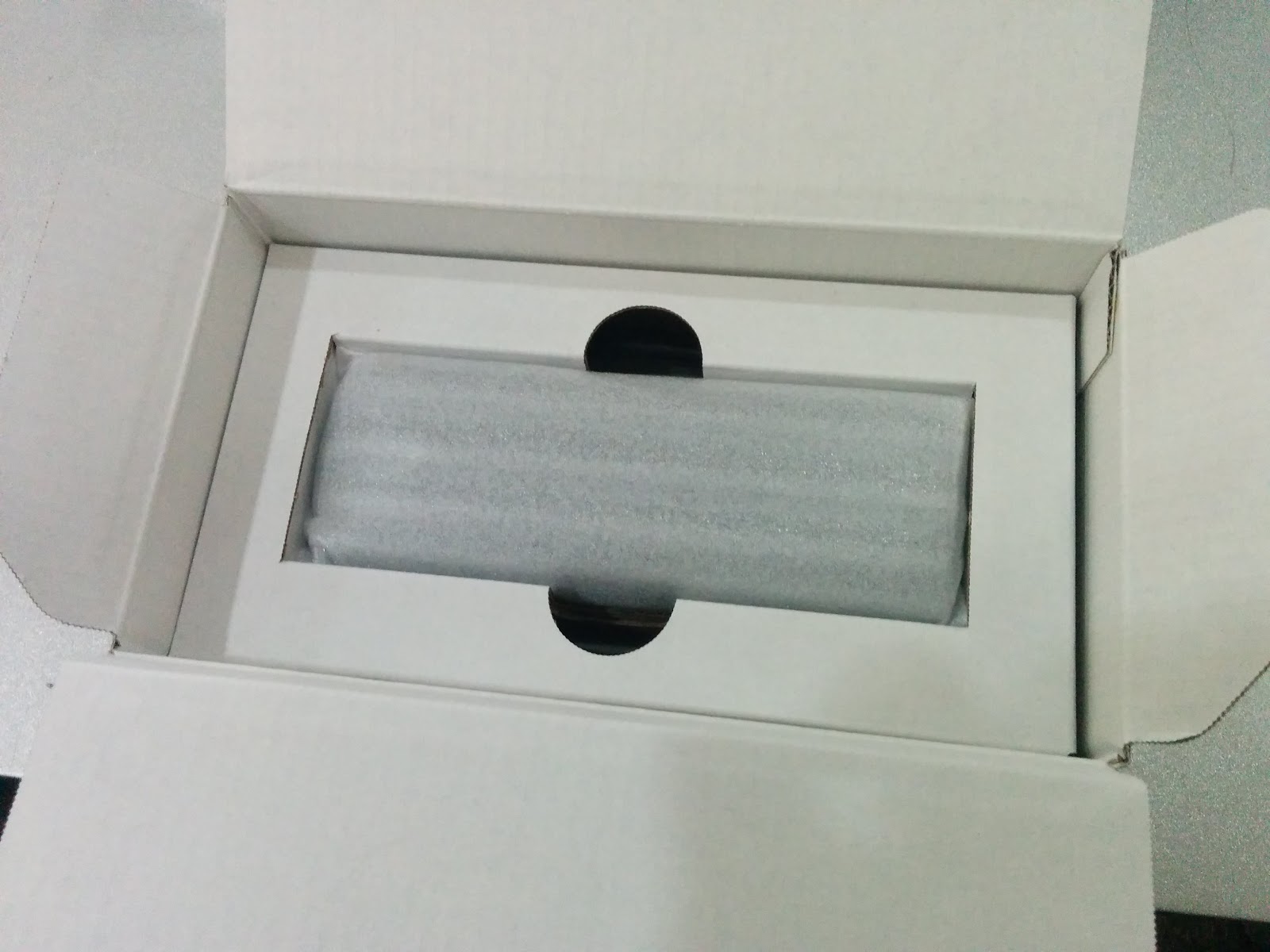 打開後看到兩旁有充了氣的塑膠氣囊保護,減少產品承受的震盪。