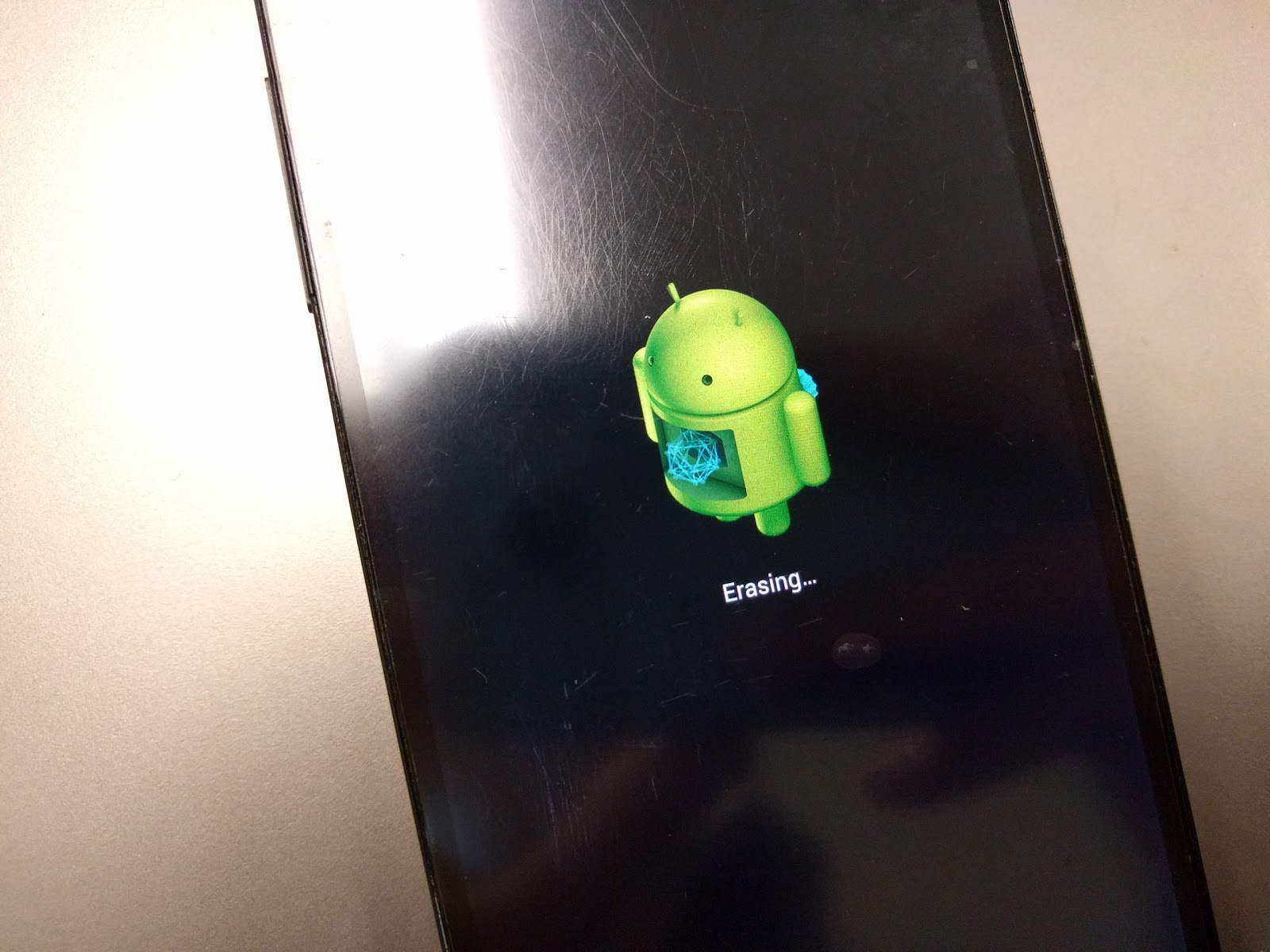 花了1小時把Nexus5回復原廠設定 打算把舊機Nexus5回復原廠設定,開始後只顯示圖中的綠色機械人加上"Erasing...",接近1小時終。還以為hang機,最後看到Android 6.0 Marshmallow 的載入畫面,知道終於完成了。