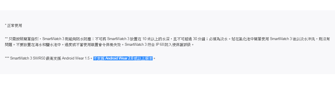 Sony SmartWatch 3 SWR50 可以更新上Wear 2.0 嗎? 有關Android Wear 2.0 的更新,早幾天網上流傳了一條清單列出可更新到Wear 2.0 的手錶品牌和型號。 http://www.androidpolice.com/2017/02/08/here-is-the-complete-list-of-every-watch-getting-android-wear-2-0/ 小弟正是使用Sony SmartWatch 3 SWR50 ,所以特別關注此型號的動向。因為這型號並沒有出現在上列名單內,而Sony 又沒有公開表態,所以用家們都議論紛紛。 終於,官方網站露出答案了...... https://www.sonymobile.com/hk/products/smart-products/smartwatch-3-swr50