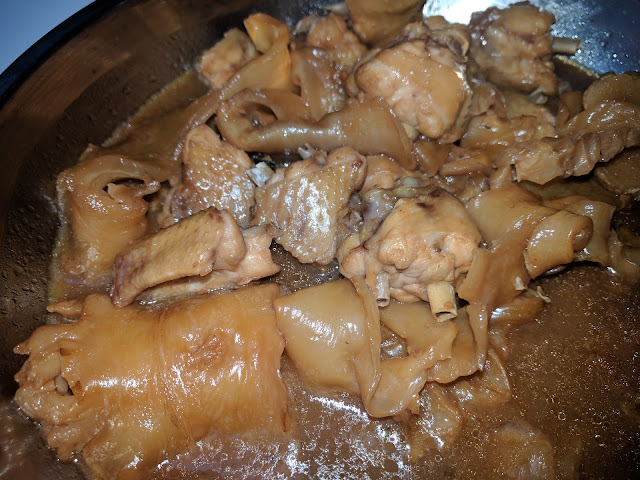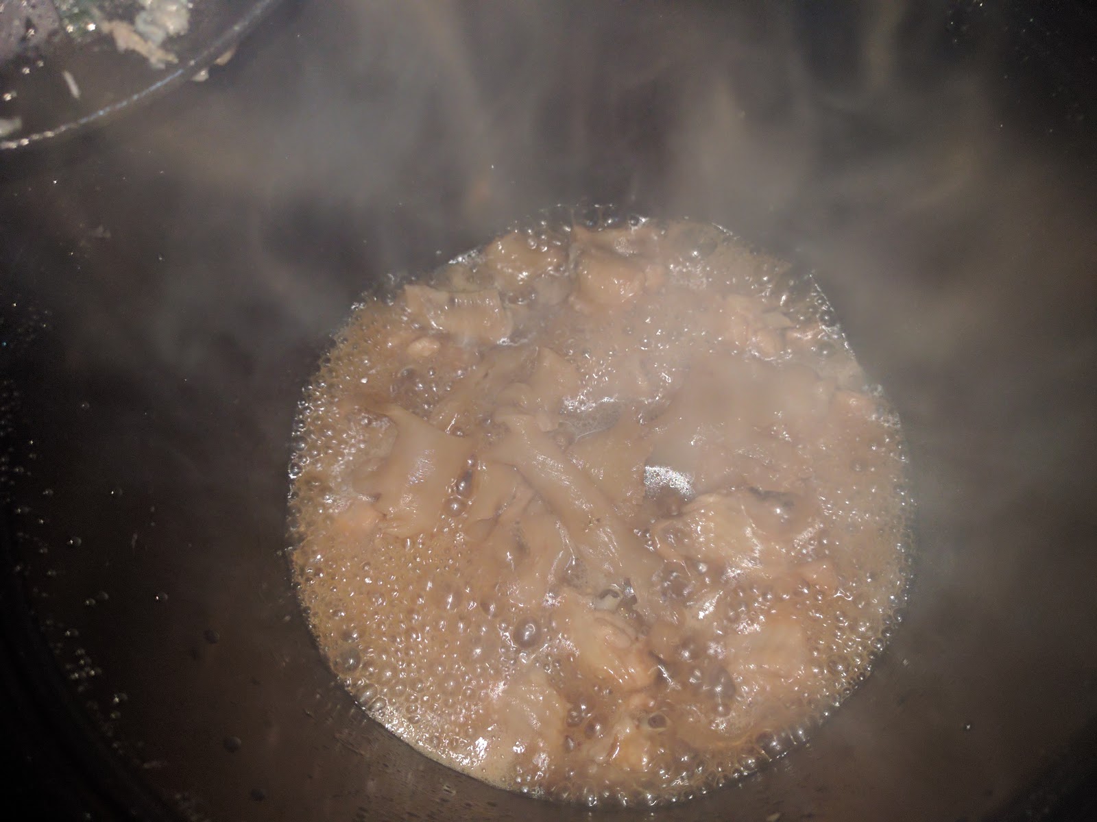 因為家裏沒有冬菇,又沒有買雞,不過雪櫃有雞翼,所以煮了魚肚炆雞翼。