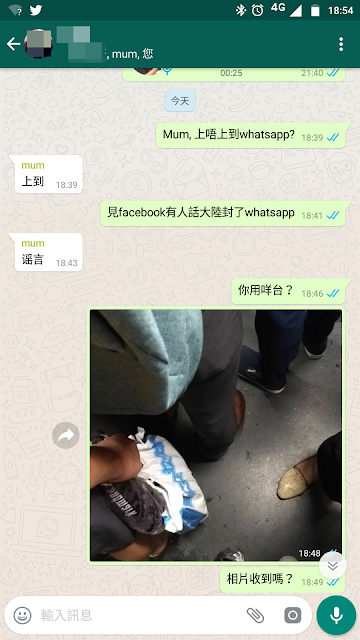 大陸已經禁用了Whatsapp 嗎? 今天在Facebook看到"VPN 翻牆先用得!國內開始禁用 WhatsApp?"為題的文章,立刻Whatsapp 正在中國內地探親的媽媽,送出不久,收到她的回應...... 再問清楚她正在使用家居的WiFi網絡還是手機訊號,知道她們家居網絡還可使用Whatsapp,不過手機服務則無法使用Whatsapp了。