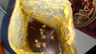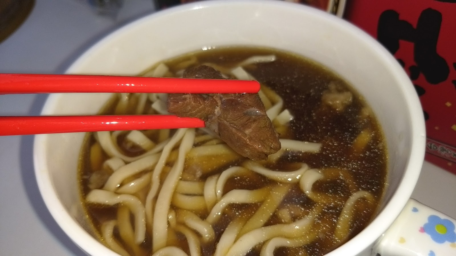 前幾天途經優品360的店舖門口,被放在門面當眼位置的珍苑紅燒牛肉麵吸引了,買了一盒來填當晚餐。這盒牛肉麵的價錢不算便宜,折扣後我付了HK$39.9,如果與滿漢大餐的紅燒牛肉碗麵約HK$20比較,相差近一倍。