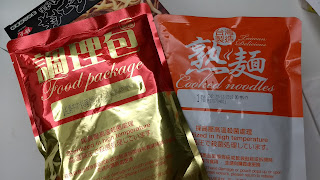 盒內分別有熟麵和調理包各一,熟麵包內是白色軟身的粗麵,而調理包內是牛肉和牛肉清湯,牛肉的份量和滿漢大餐的差不多。