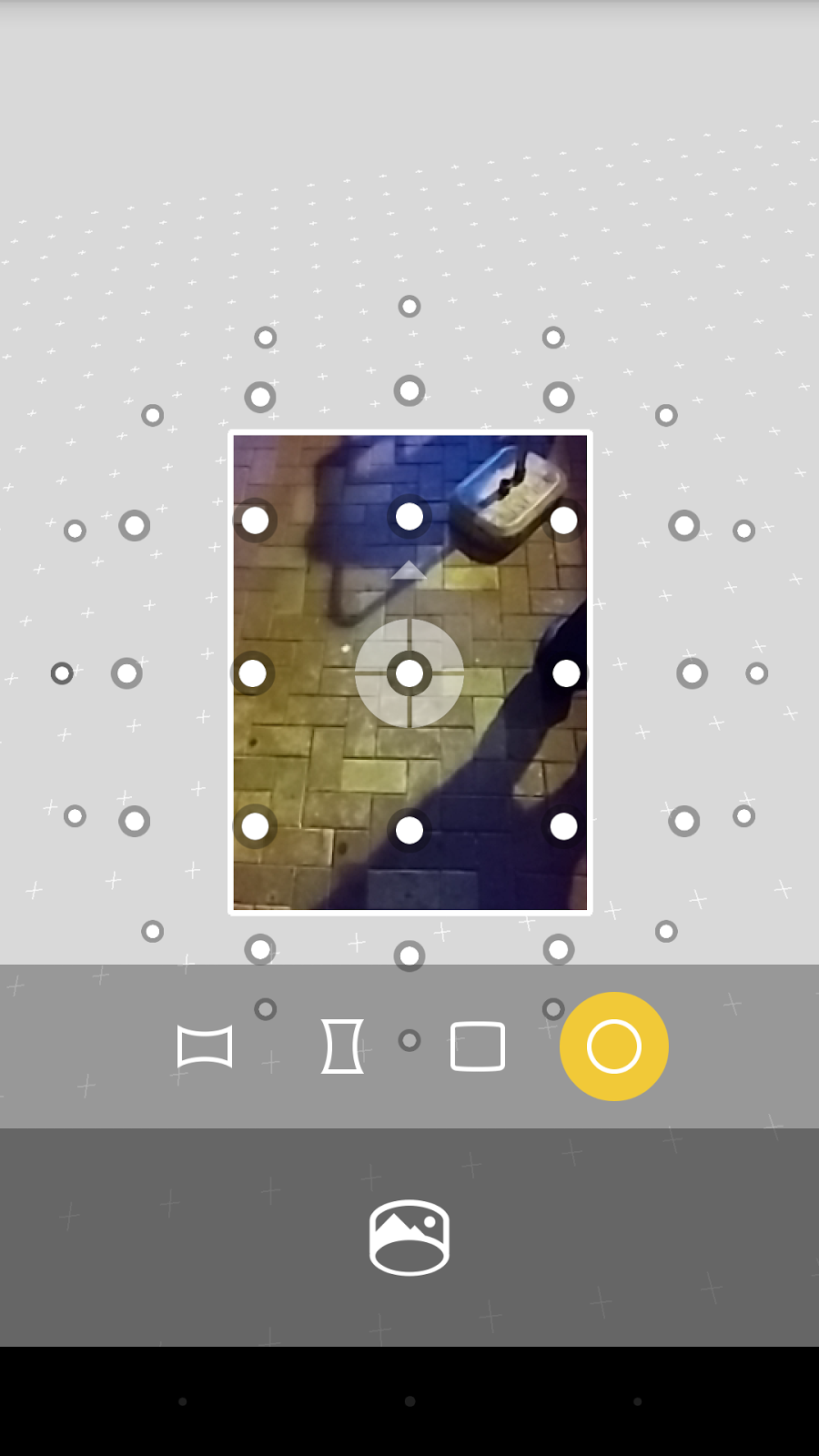 當你選擇拍照比例為 16:9 的像素,畫面上的拍照按鈕便會自動變成半透明,以顯示真正拍攝的可見範圍。亦可以解釋為可早前的拍照鍵如此龐大。